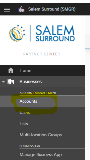 5. Select clients' business and then click "create account " at the bottom of the page.